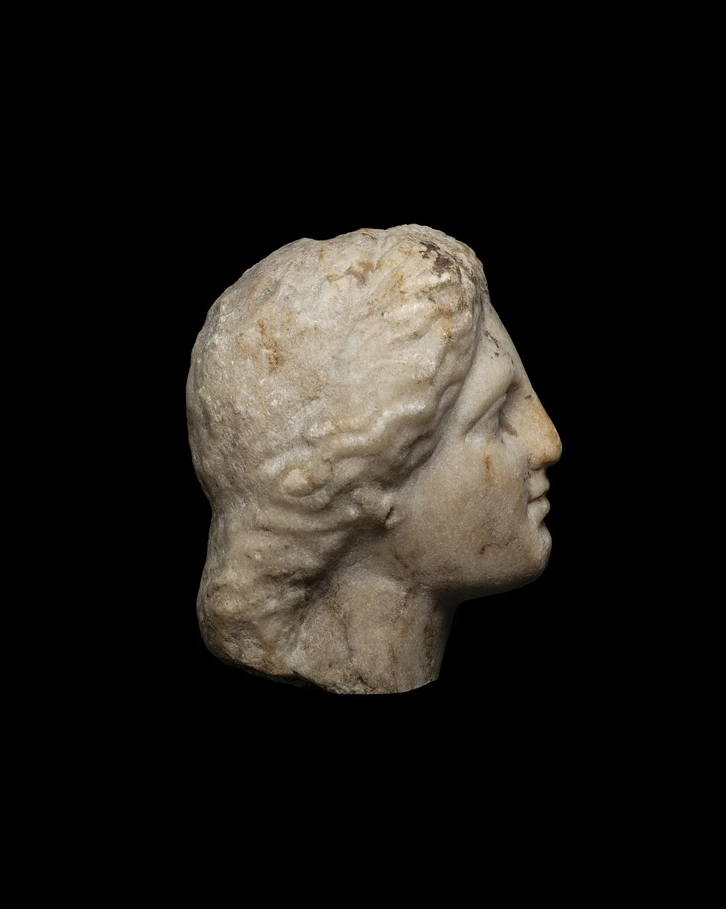 The idealising features of the face and the treatment of the hair find their closest parallels on Attic funerary monuments of the 4th century BC. For the hair, see C.W. Clairmont, Classical Attic Tombstones, 1993, nos. 2.343 and 2.436; for the treatment of the facial features see I. Laube, Expedition Ernst von Sieglin: Skulpturen des Hellenismus und der Kaiserzeit aus Ägypten, 2012, no. 28 (Dionysus).